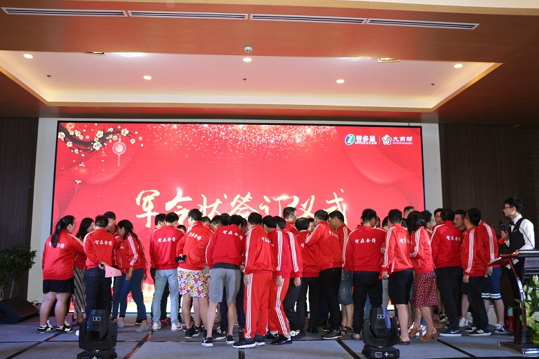 新的“領(lǐng)導(dǎo)班子”已經(jīng)確定,接下來(lái)就要當(dāng)眾簽訂2019年度目標(biāo)任務(wù)了。在豐厚的獎(jiǎng)金面前,各銷售部摩拳擦掌,要在2019年大干一場(chǎng)!