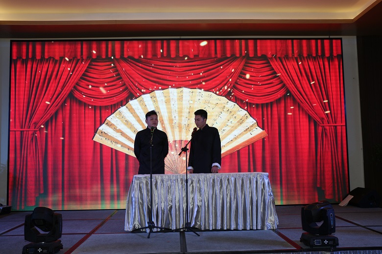 越南海關(guān)對(duì)旅客的行李物品檢查甚嚴(yán),很多物資無(wú)法順利入境,但我們年會(huì)現(xiàn)場(chǎng)的布置一點(diǎn)也不輸國(guó)內(nèi)氣派!